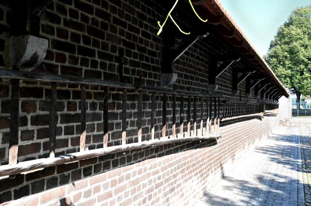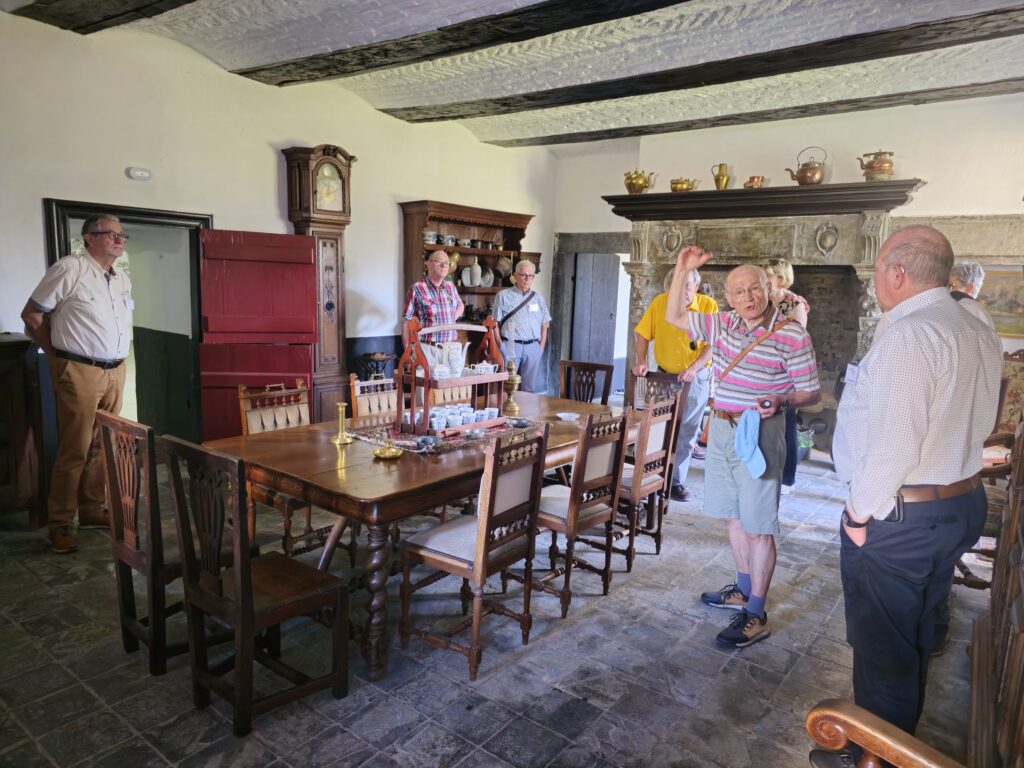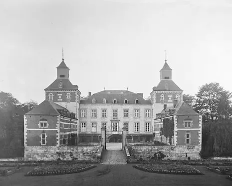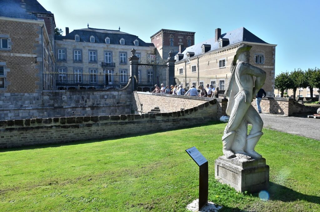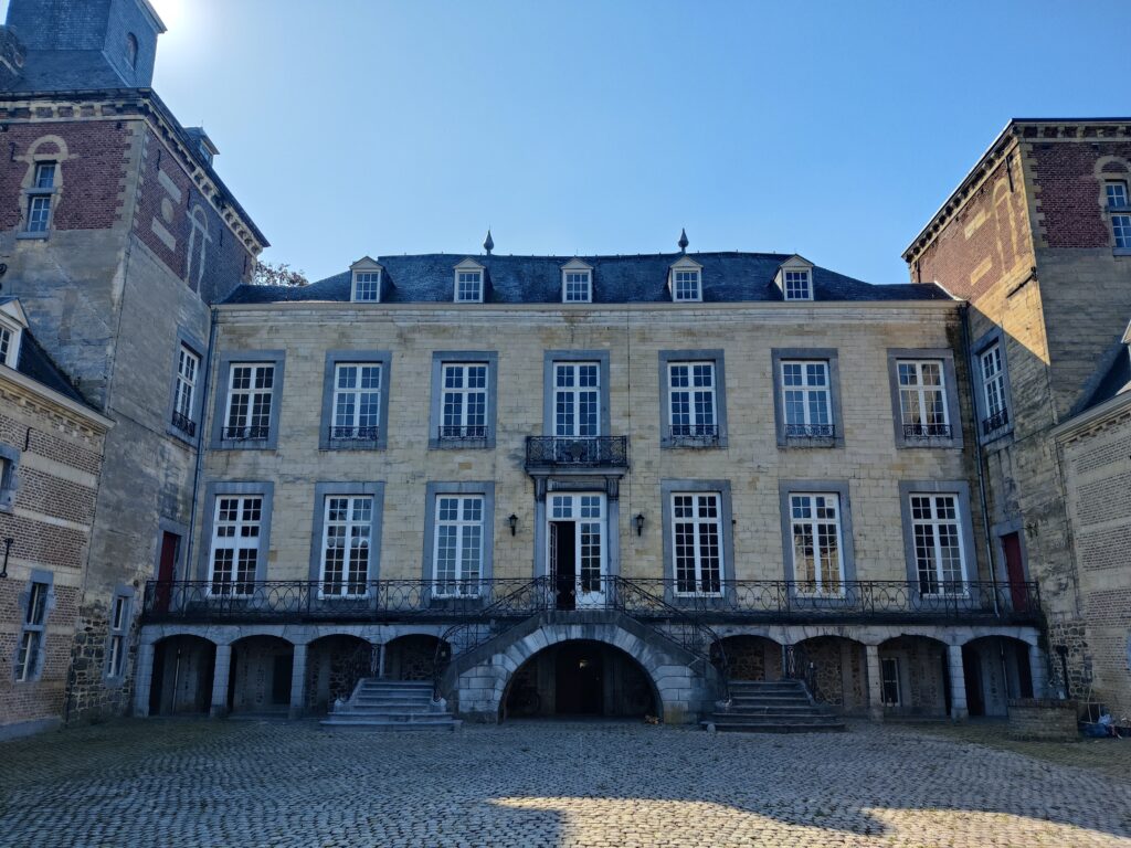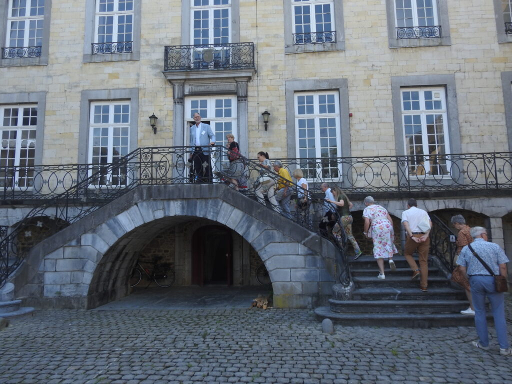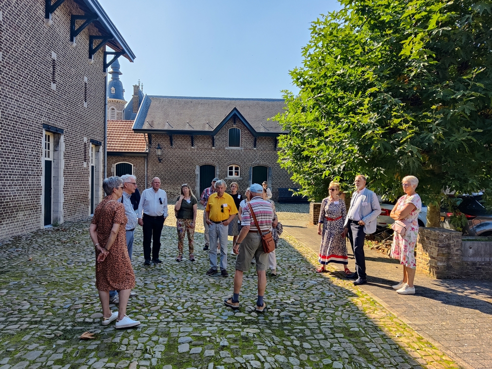De groep bezocht allereerst de hoefijzervormige hoeve. De 17de-eeuwse voorhof brandde in 1887 uit. De toenmalige baron, Raphaël de Selys-Longchamps, liet er geen gras over groeien. Hij liet het merendeel slopen, ook de vleugels die nog overeind stonden, en bouwde de boerderij op grootse wijze terug.