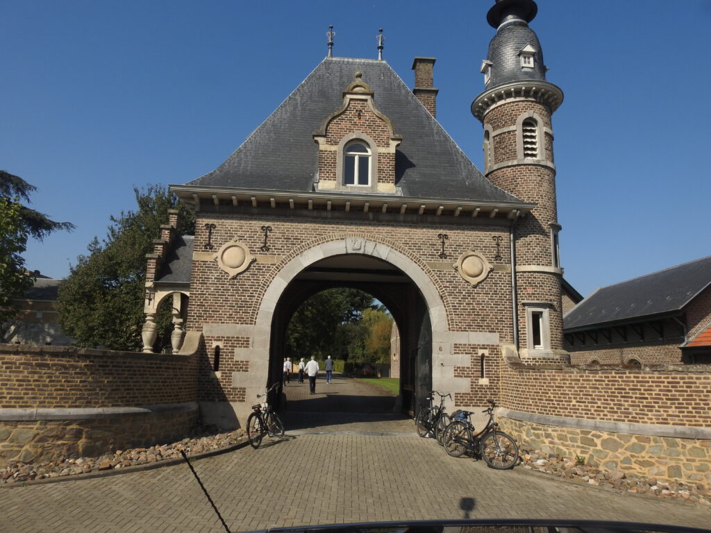 Onder leiding van twee gidsen werd er in twee groepen uitgebreid stilgestaan bij de ontstaansgeschiedenis van het kasteel en de hoeve. Op het buitenterrein van het kasteel bevindt zich de toegangspoort/conciërgewoning.