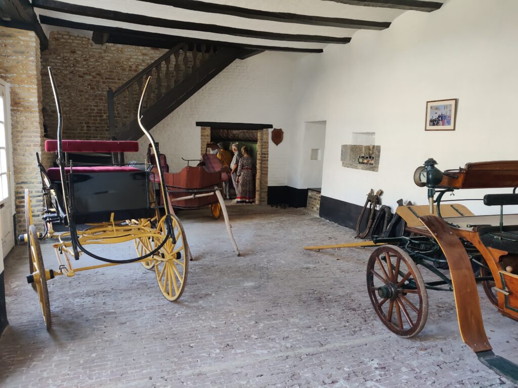 Na het passeren van de gerestaureerde gracht gaan wij via de fraaie smeedijzeren toegangspoort naar het voorplein van het kasteel waar in gloriedagen de koetsen aan en af reden. Wij bezoeken eerst de verschillende paardenstallen en het koetshuis.